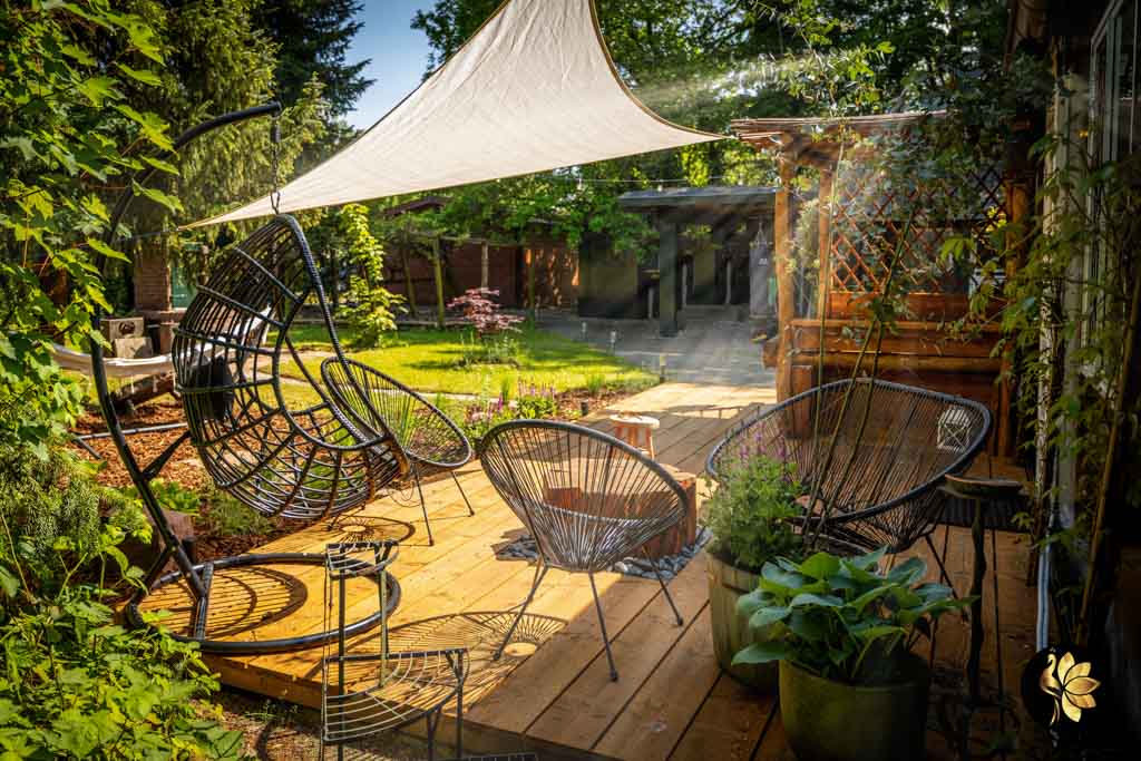 tuin op het Noorden is, hebben wij zorgvuldig de juiste spot gekozen om een zitje te creëren.